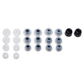 S/M/L “Standard bore” silicone, S/M/L “Shorter bore” silicone, XS/S/M/L “Widebore” silicone, M foam eartips