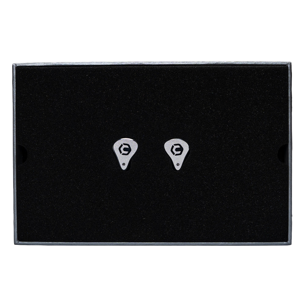 Midrange and high frequencies are reproduced by a carefully-constructed array of twin Sonion midrange drivers and a single Knowles supertweeter. Every driver is hand-selected to achieve our stringent tuning goals, and subsequently designed with the most efficient crossover network possible.