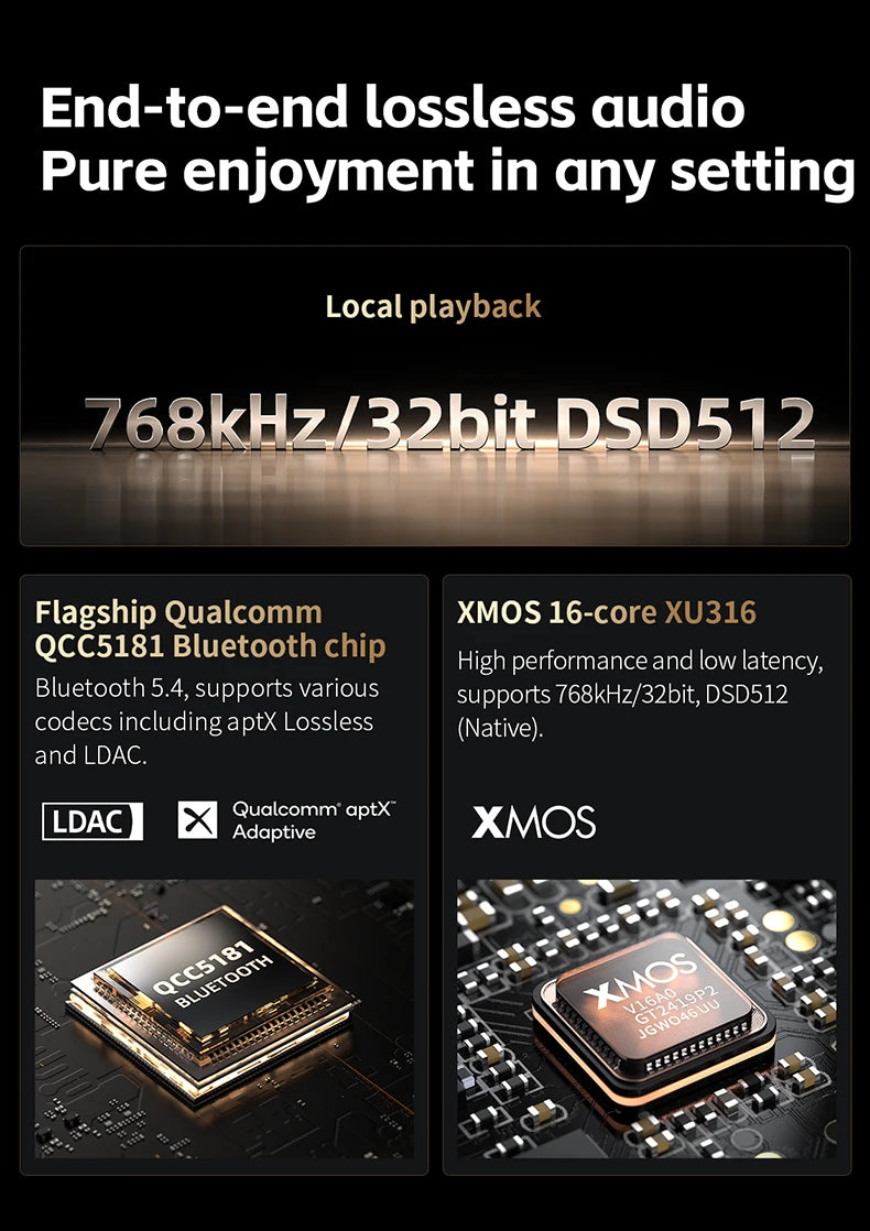 - QCC5181 lossless Bluetooth and XMOS 16-core XU316