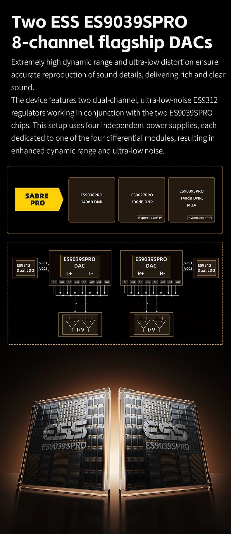 - Dual ES9039SPRO DAC with coaxial and optical outputs