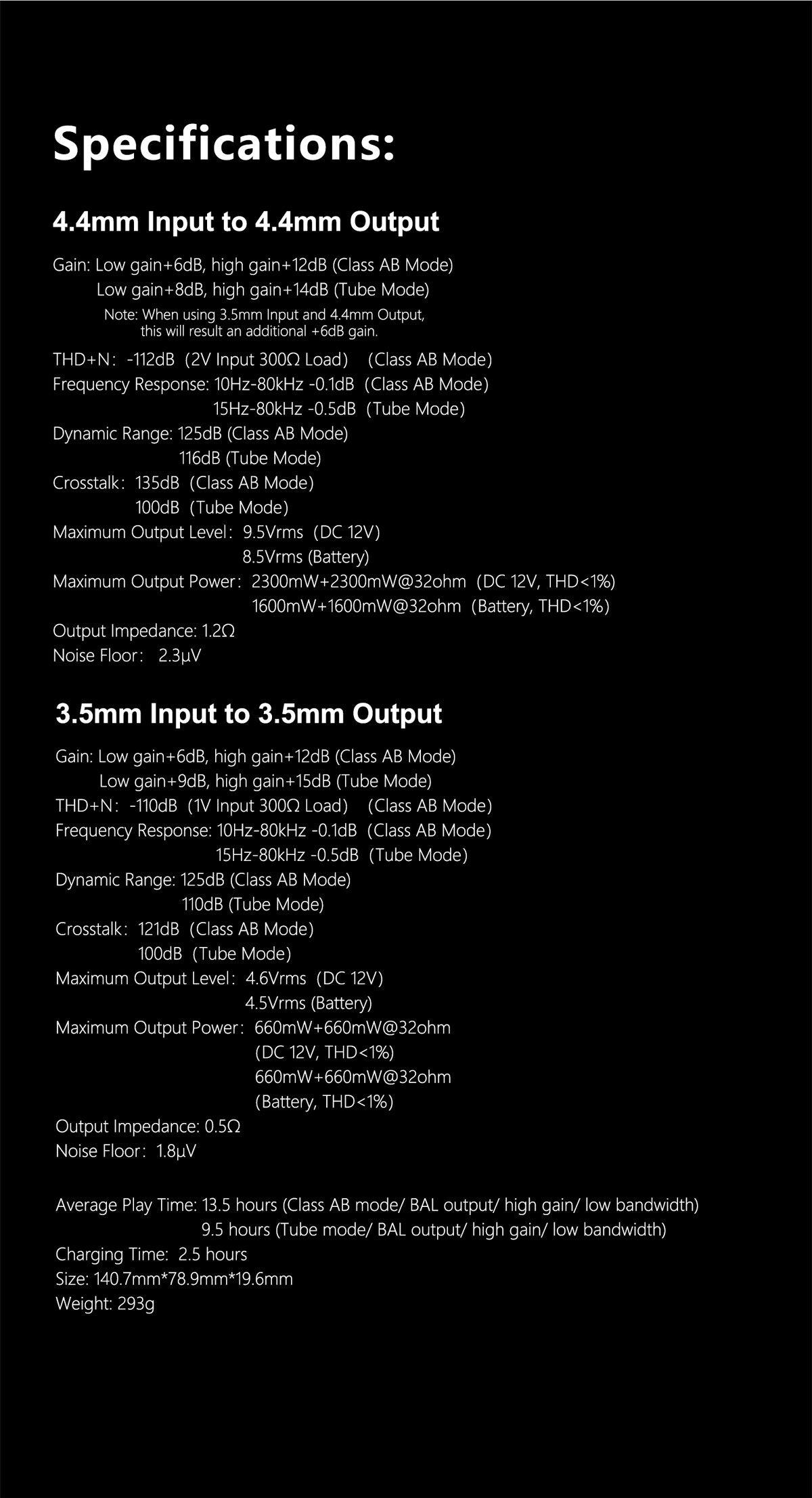 Performance (3.5mm Input → 3.5mm Output) Class AB