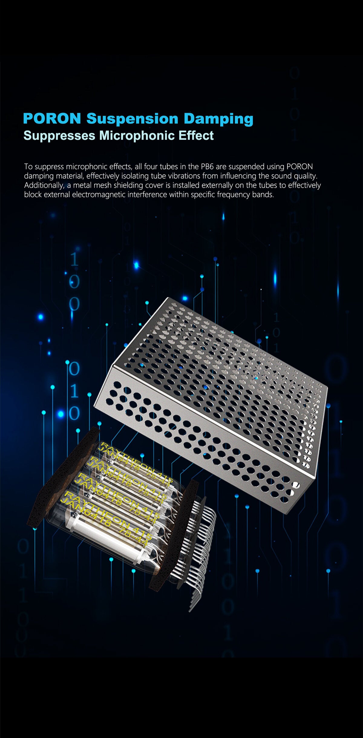 PORON damping system + mesh shielding