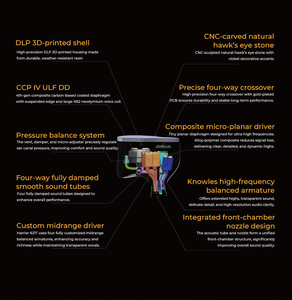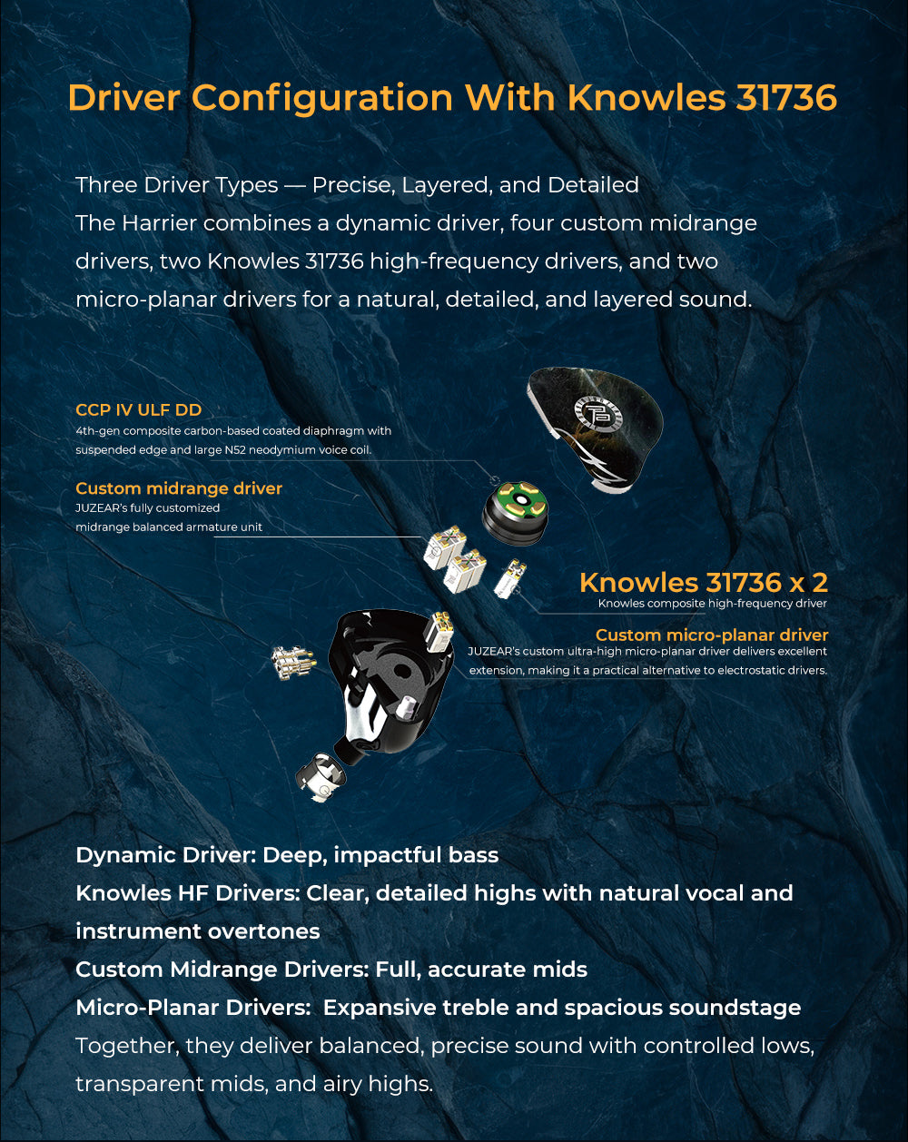 - Custom-Developed Mid-Frequency Balanced Armature Drivers