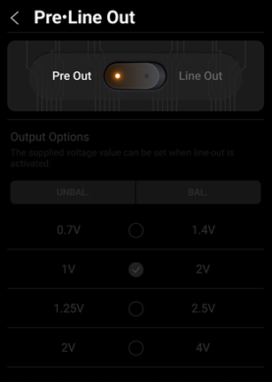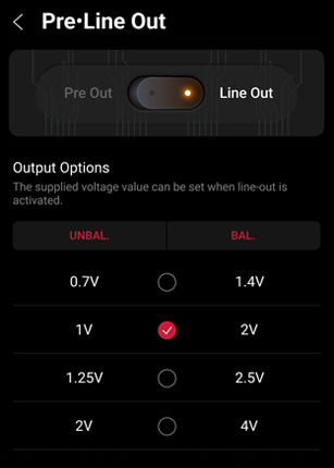 • HEADPHONE OUT / PRE-OUT / LINE OUT options