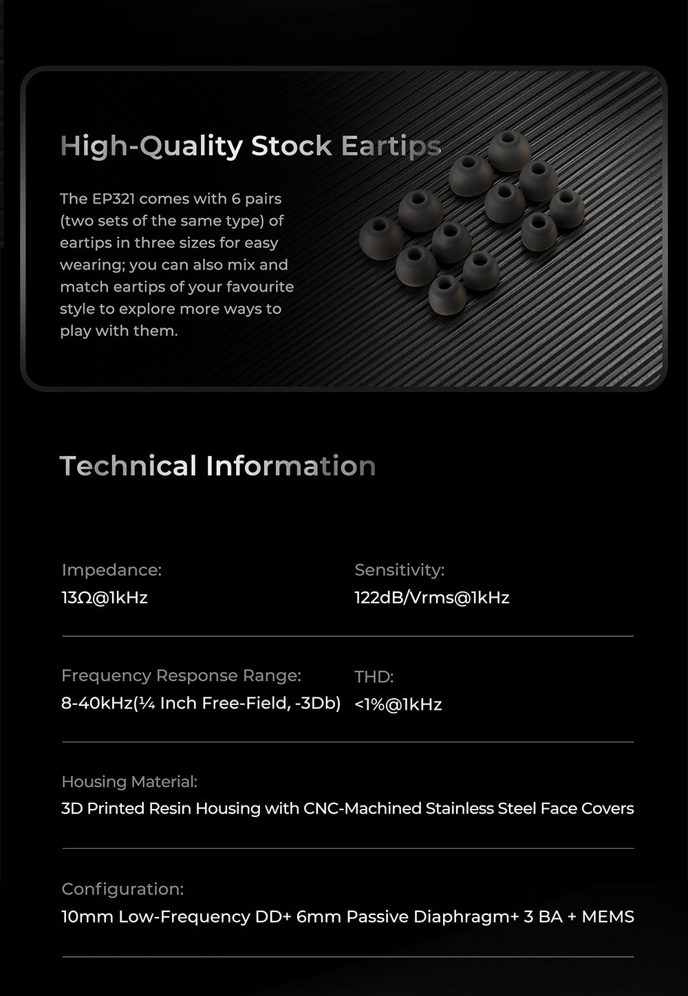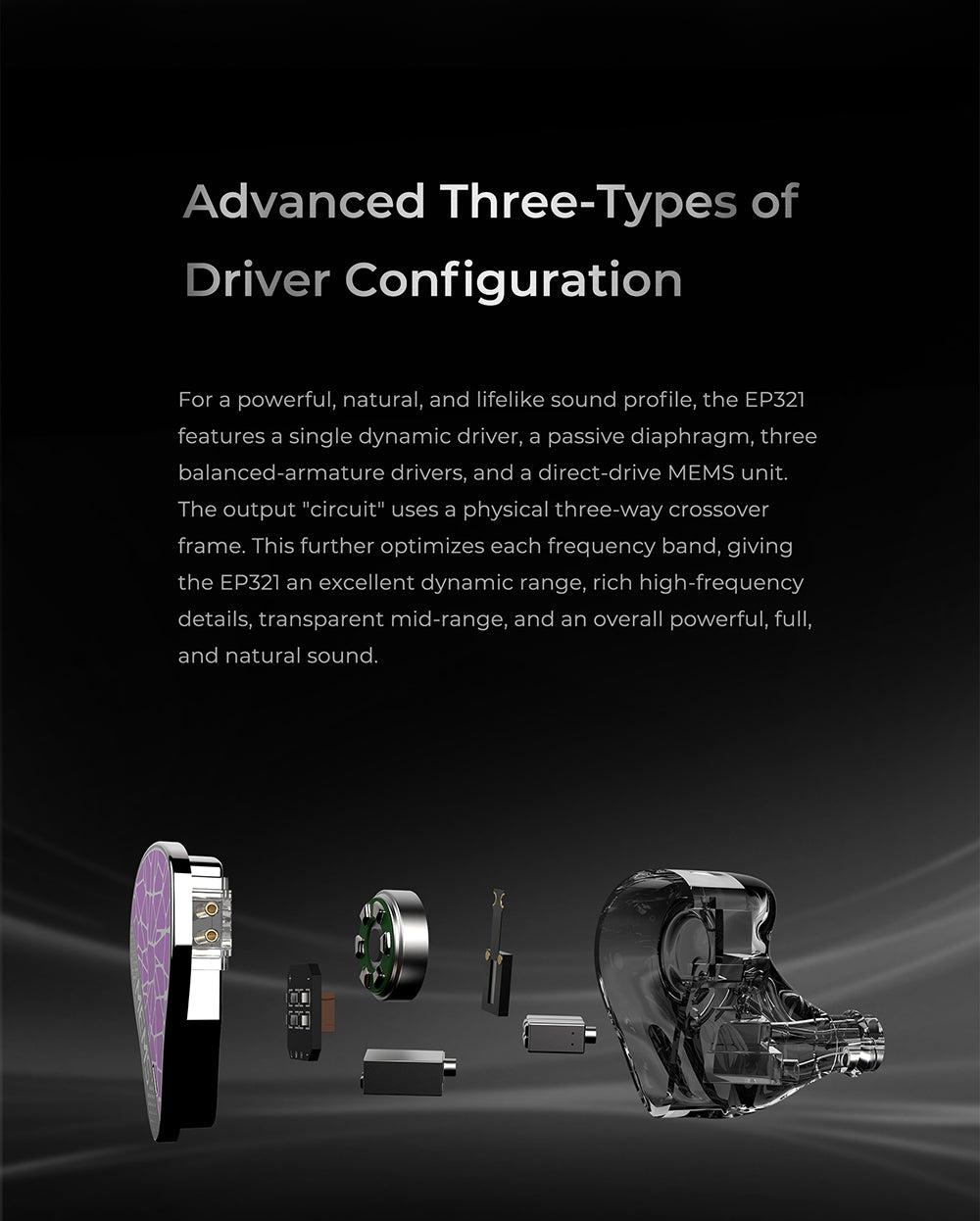 - Dual Dynamic Drivers (1 Active + 1 Passive)