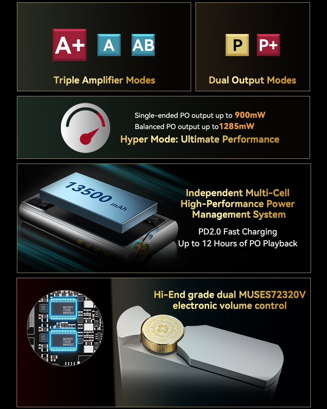 • Up to 900mW single-ended / 1285mW balanced output