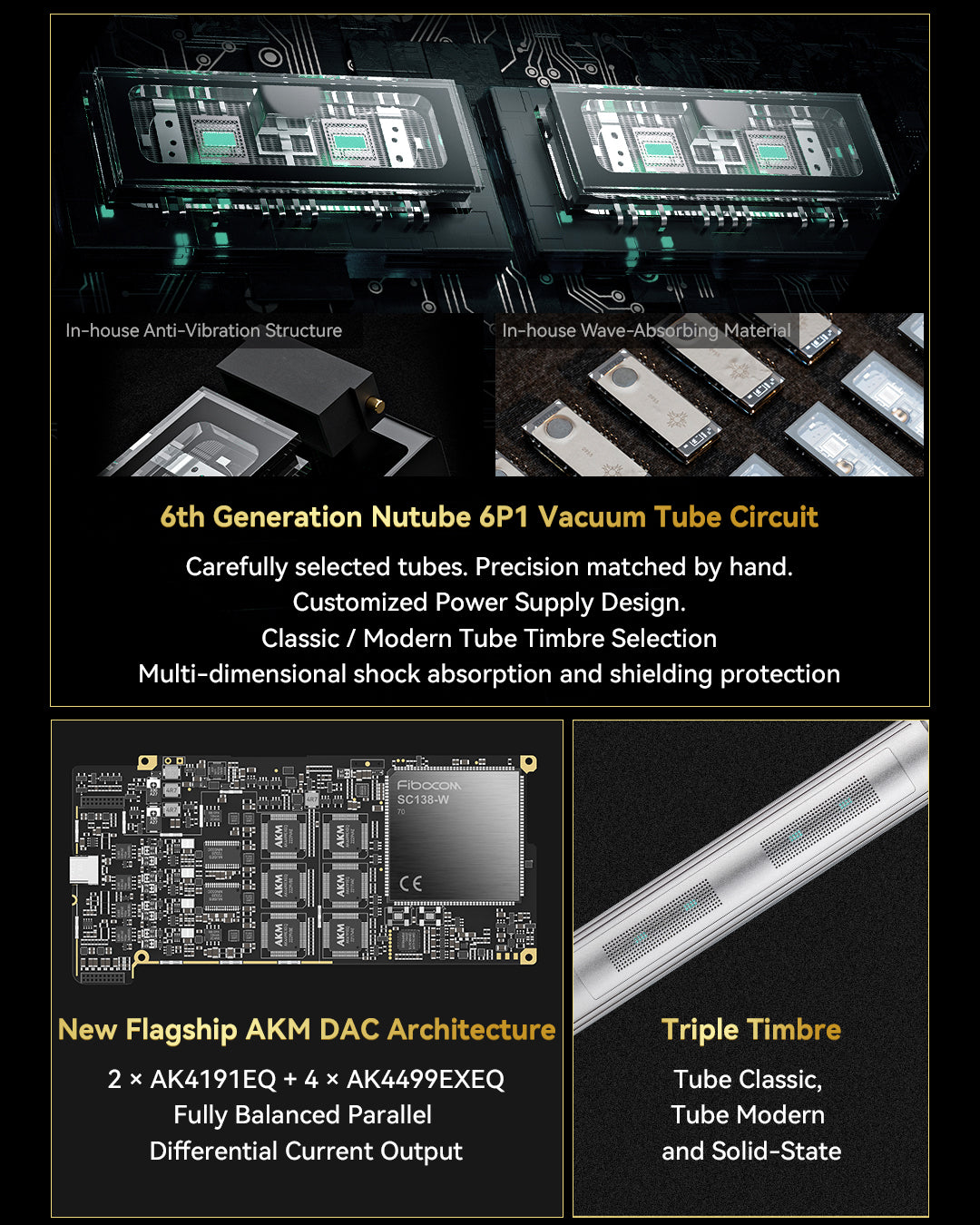 • Triple Timbre: Tube Classic / Tube Modern / Solid-State