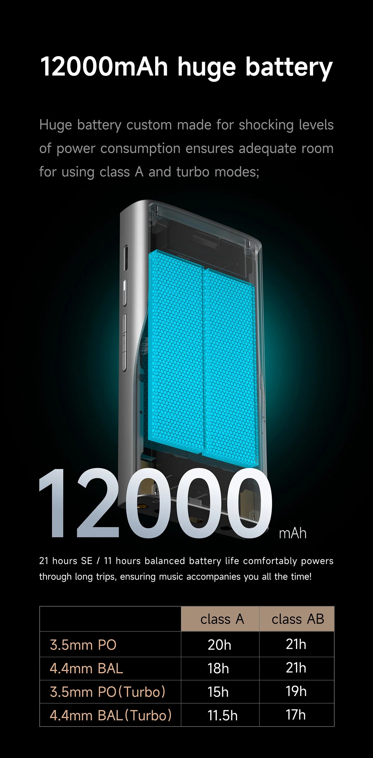 - 12000mAh high-capacity battery