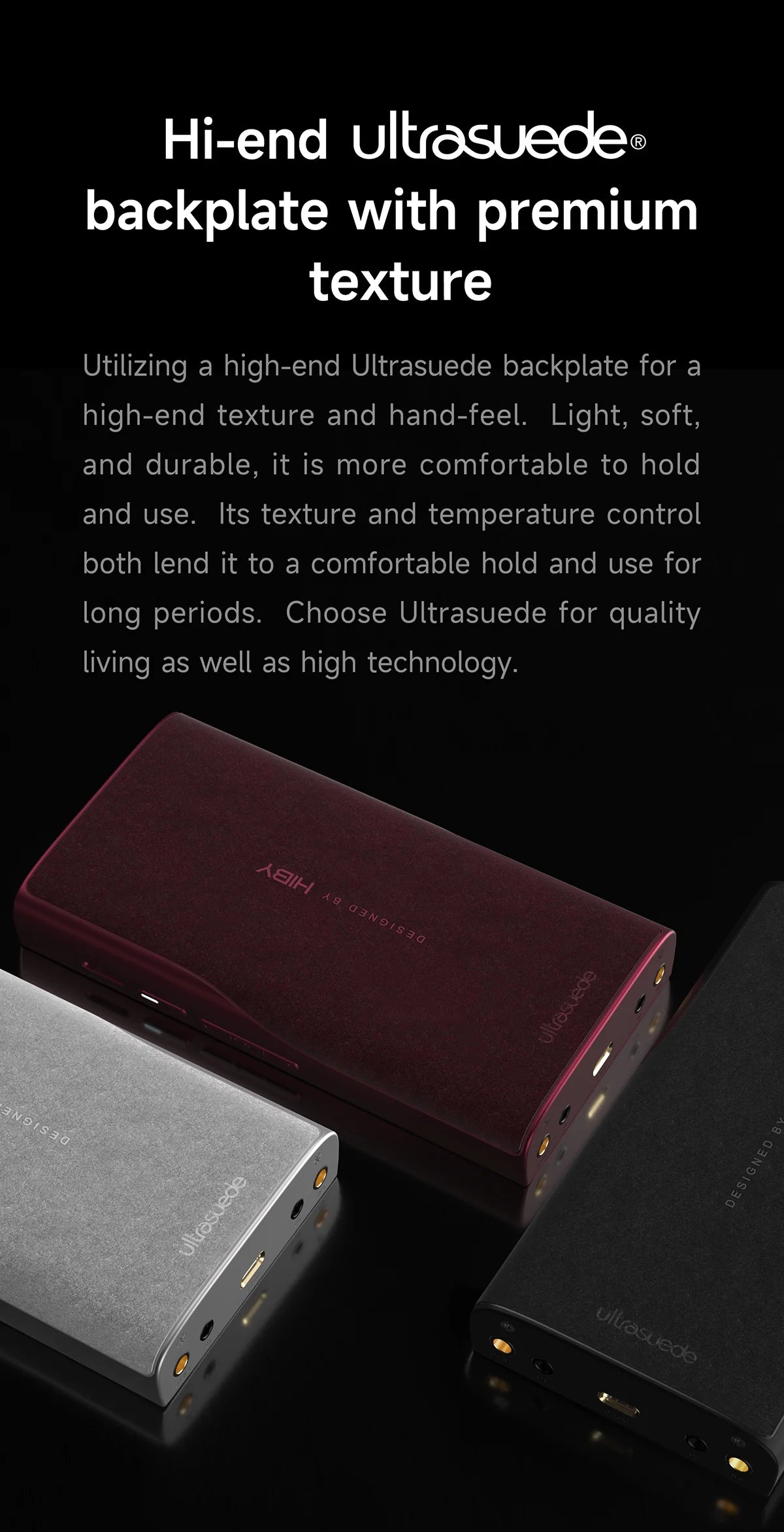 - Hi-End Ultrasuede® back panel