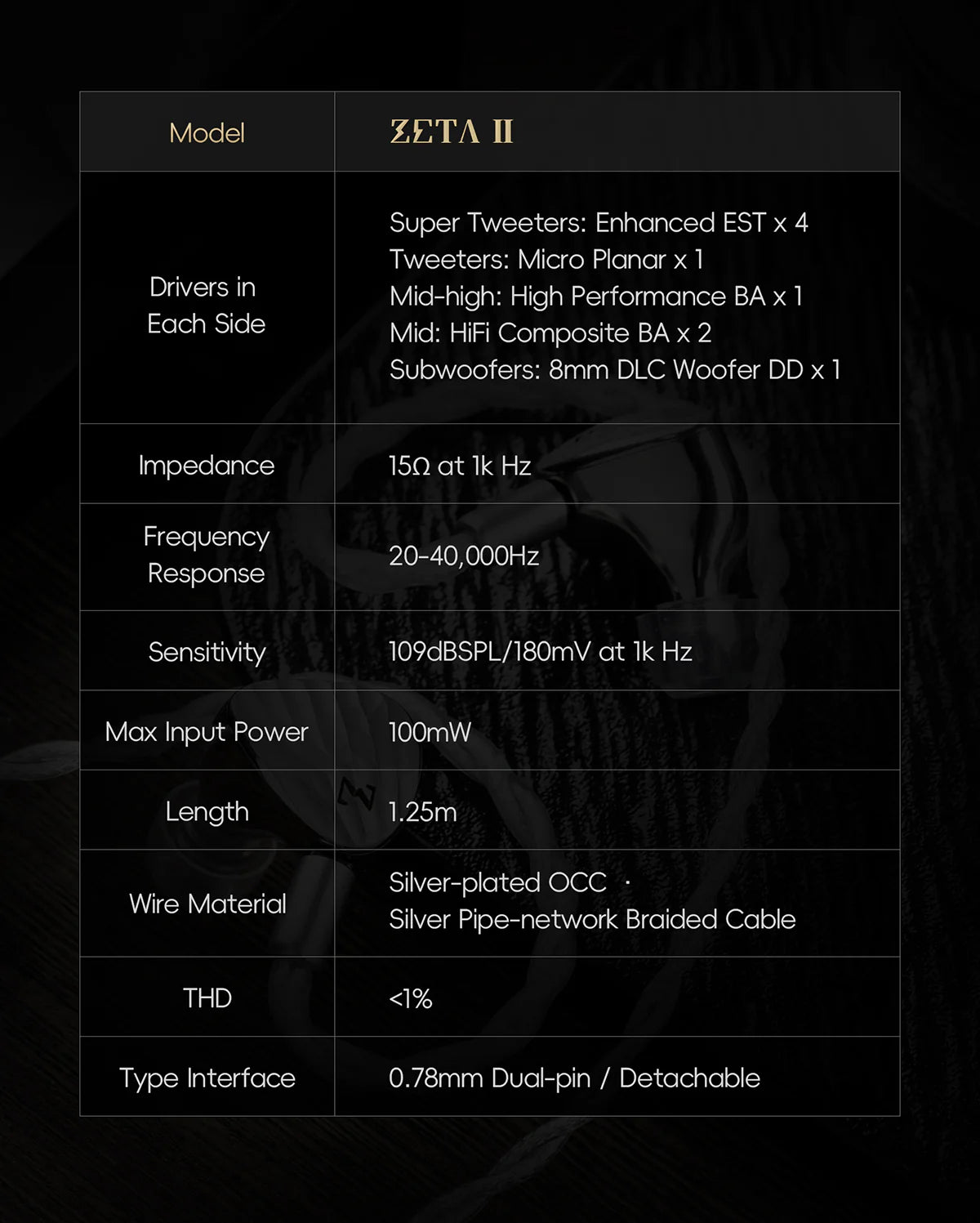 - Cable: 4N pure silver + 5N silver-plated monocrystalline copper with 4.4mm balanced plug