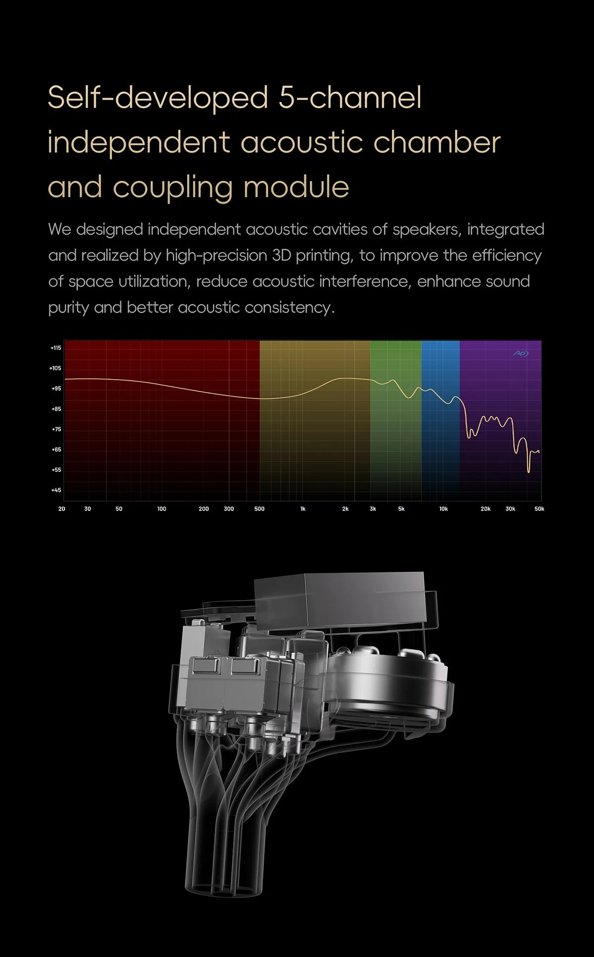 - Silver-plated crossover circuit with 3D-printed acoustic chambers