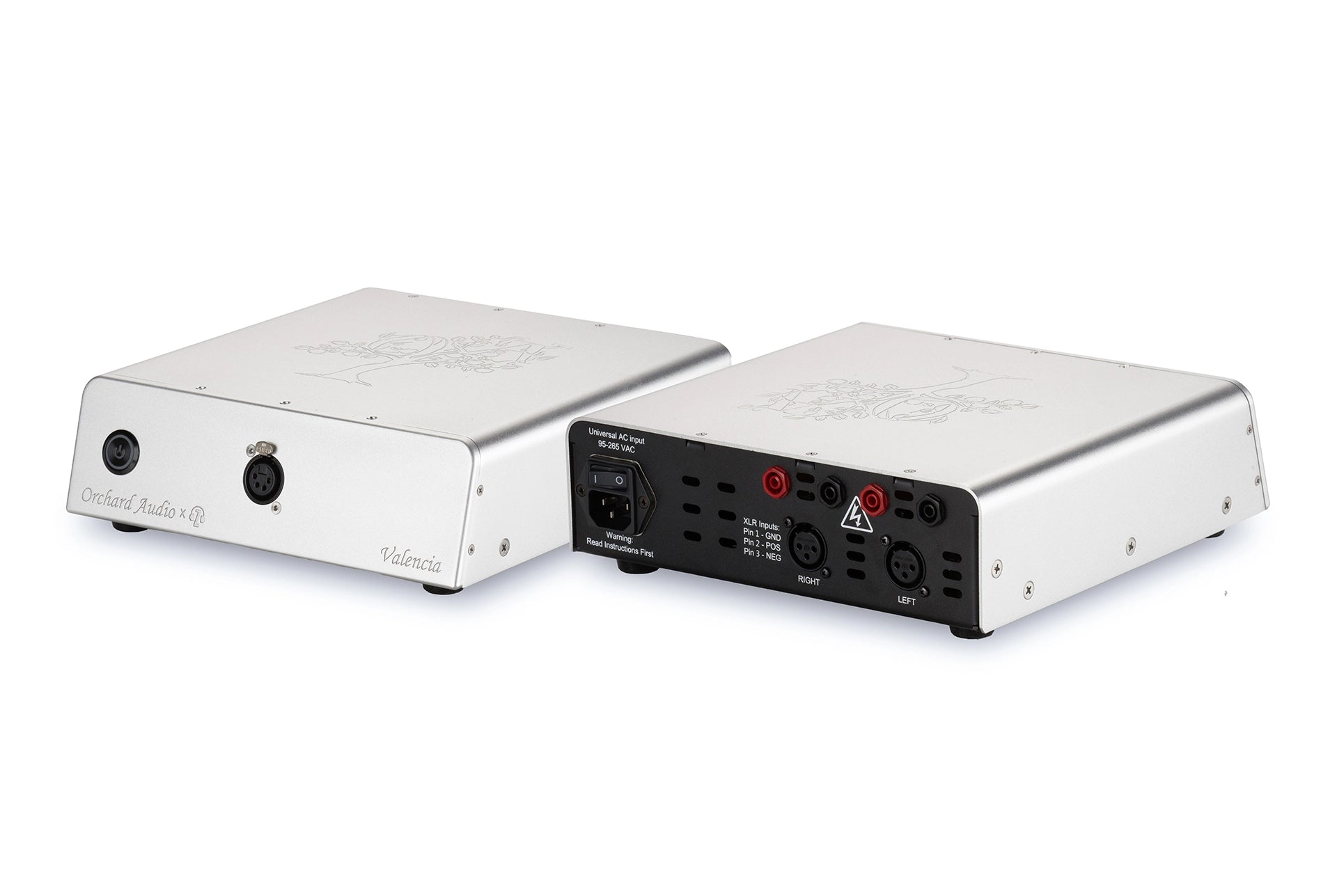 RCA to XLR adapters may be used with the rear inputs. These adapters lower the potential output power of the amp, which may benefit some users of more sensitive headphones. Alternatively, should your source be only RCA and you wish to use the full power of Valencia, Orchard Audio sells an active RCA to XLR Converter for this use case.